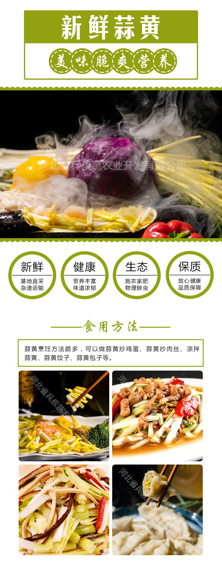 中華美食文化,歷史悠久,餐桌上很少會(huì)有黃色的葉菜,蔥姜蒜,從單一的使命上來說,或許只是調(diào)味品,但,今天,我們賦予了它二次使命,能夠成為一種獨(dú)特的菜品呈現(xiàn)在國人的餐桌上,彰顯它獨(dú)特的魅力,奉獻(xiàn)特殊的芳香。